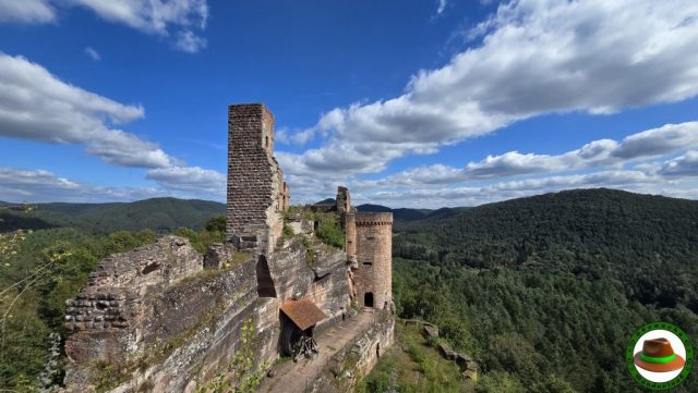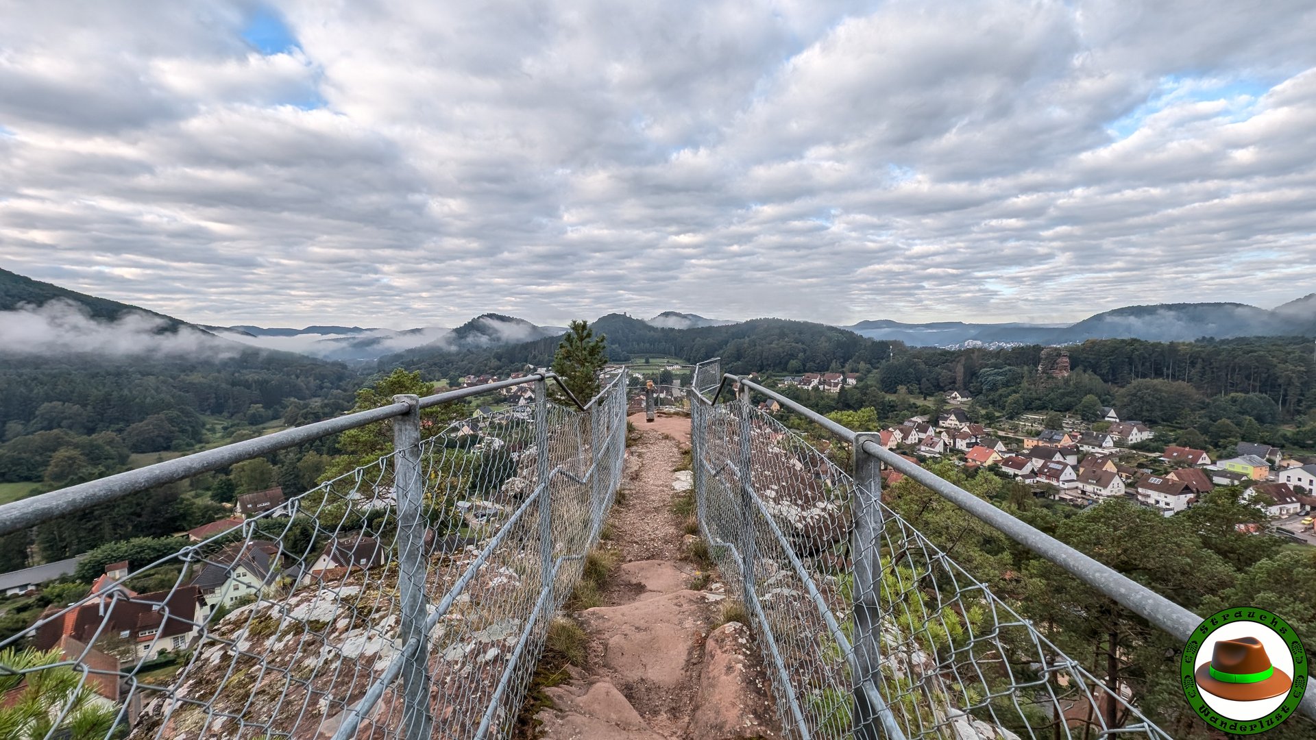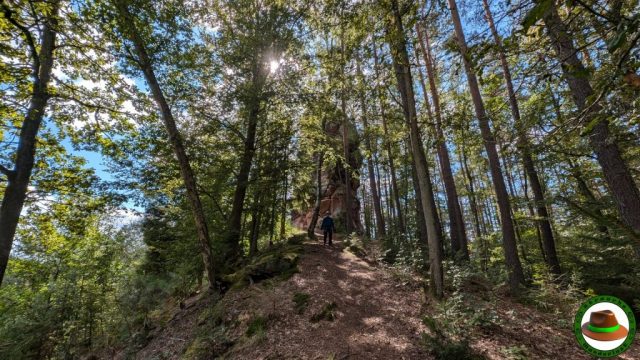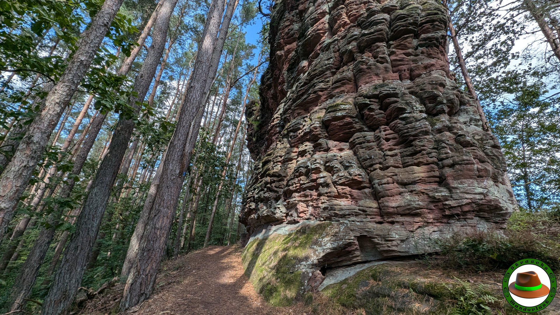 Überraschend abwechslungsreich zeigte diese ca. 16 km lange Runde. Felsen noch und nöcher säumten beidseits des Weges, während unter uns die Kiefernnadeln auf dem Singletrail unsere Schritte abfederten. Und nicht nur das: Die Gastfreundschaft der Pfälzer zeigte sich im Biergarten/Clubhaus des FCS-Stad’l – Biergarten , die uns außerhalb der Öffnungszeiten eine Cola anboten. Herzlichen Dank dafür! Auch das Burgenmassiv Altdahn hat uns über eine Stunde beschäftigt, so dass Ihr auf dieser Tour 1-2 Stunden Rumguckzeit einplanen solltet.